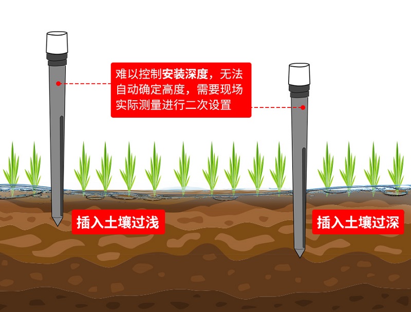 除此之外,为保障用户体验,稻田水位计还加入了其他设计。传统的稻田水位计在安装时难以控制安装深度,无法自动确定高度,需要现场实际测量进行二次设置,费时费力。