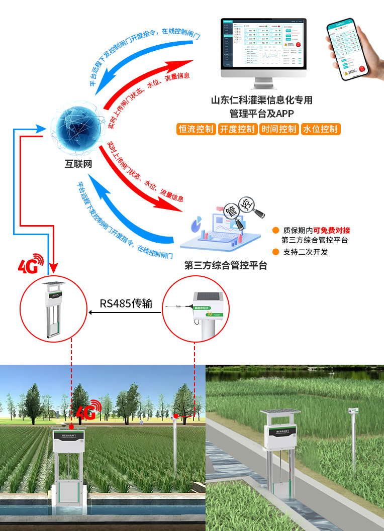 ①稻田水位计搭配我公司 灌区自动化闸门(传送门,点击即可查看)和云平台一起使用,还可以组成 智能灌排系统。
