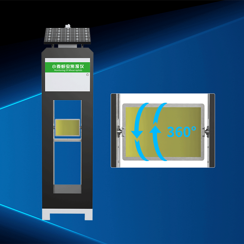 小麦蚜虫虫情测报仪的色板 采用同轴旋转结构,可以使色板均匀暴露于各方位,克服传统单面诱捕的盲区问题,经过现场实测证明,相比固定结构,360°设计能够使单位时间捕获量增加120%,尤其适应蚜虫迁飞期的多向扩散特性。