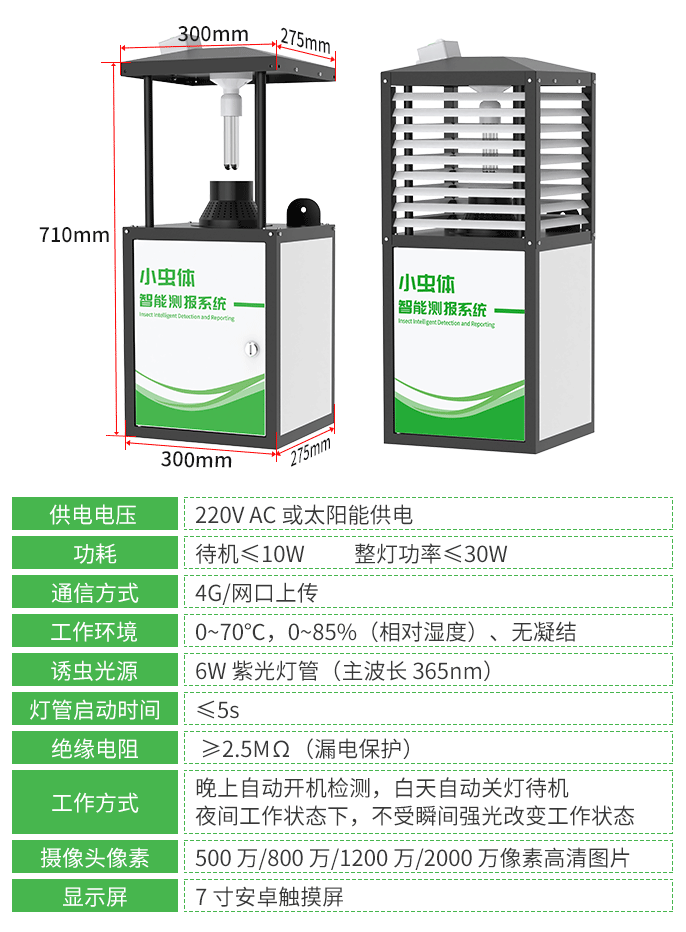小虫体智能测报系统 采用特殊定制的进虫口过滤结构,结合蜂巢式几何结构,可实现毫米级害虫的精准捕获(仅允许体长≤5mm的害虫通过),且 结构材质为表面喷有防腐涂层钣金,可保障设备户外长期使用不生锈。