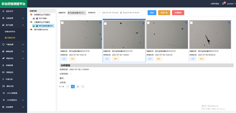 ② 采用云服务器技术,用户可在云平台,实现对病菌孢子图片的人工统计与孢子种类AI自动分析,实时人工远程查看确认,缩短了预测预报周期。