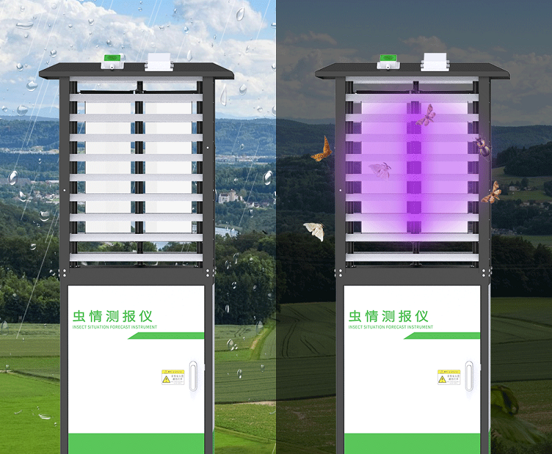 若用户既想快速有效的杀虫,还想了解杀虫数量,便可选择害虫远程监测站。害虫远程监测站采用药物诱虫的方式,能够对害虫进行定向诱集,并将数据上传至云平台进行实时报传、计数统计,可用于农业、林业、鱼塘养殖、仓库存储等害虫种类多的场景。
