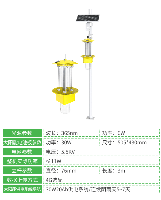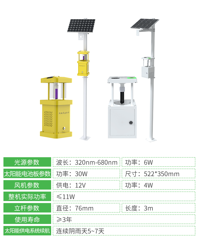 经济实惠,可大范围铺设(隔几米/几十米安装一个),不仅可以用于农业、林业还可以用于鱼塘养殖、仓库存储、日常庭院捕虫等害虫种类多场景,防止害虫泛滥或传播疾病,保护人们经济财产安全。