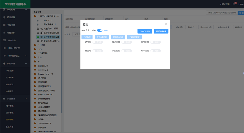 4- 交互技术,用户可通过手机/电脑端远程对虫情测报仪的引虫灯、杀虫仓、烘干仓、摄像头等核心部件进行精准操控:远程启闭诱虫灯以适配昼夜节律,调节烘干仓温度防止虫体霉变等,解决了传统虫情设备多依赖现场操作,在农田分布广、环境恶劣的场景下,设备调试难、响应滞后、维护成本高等问题。