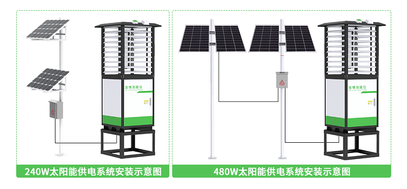 7- 太阳能供电技术,针对农田布线成本高、断电数据丢失、频繁换电维护等难题,虫情测报仪通过太阳能供电系统实现了设备在无电网场景下的正常运行,无需柴油发电机,契合了高标准生态农田的建设要求;免除了电缆铺设费用,降低了农田部署成本。