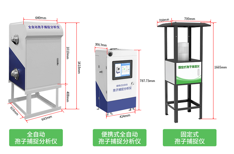 同时,为了满足更多用户的使用需求,我们还设计了体积小巧、便于移动的便携式全自动孢子捕捉分析仪 和适合长期固定在一个地方捕捉孢子的固定式孢子捕捉仪。