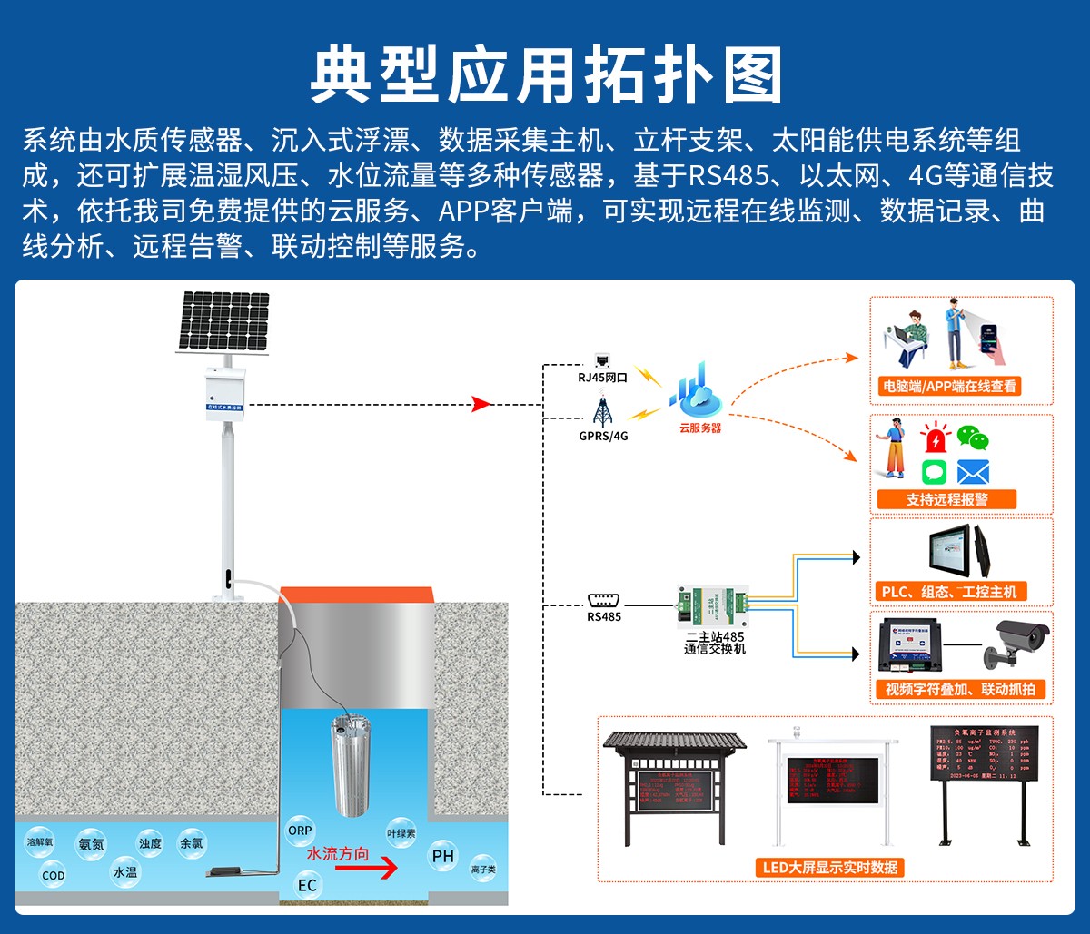 窖井地下水“立杆式监测站”基于RS485、以太网、4G等物联网通信技术,依托我司免费提供的云服务、APP客户端,可实现远程在线监测、数据记录、曲线分析、远程告警、联动控制等多种物联网应用服务。