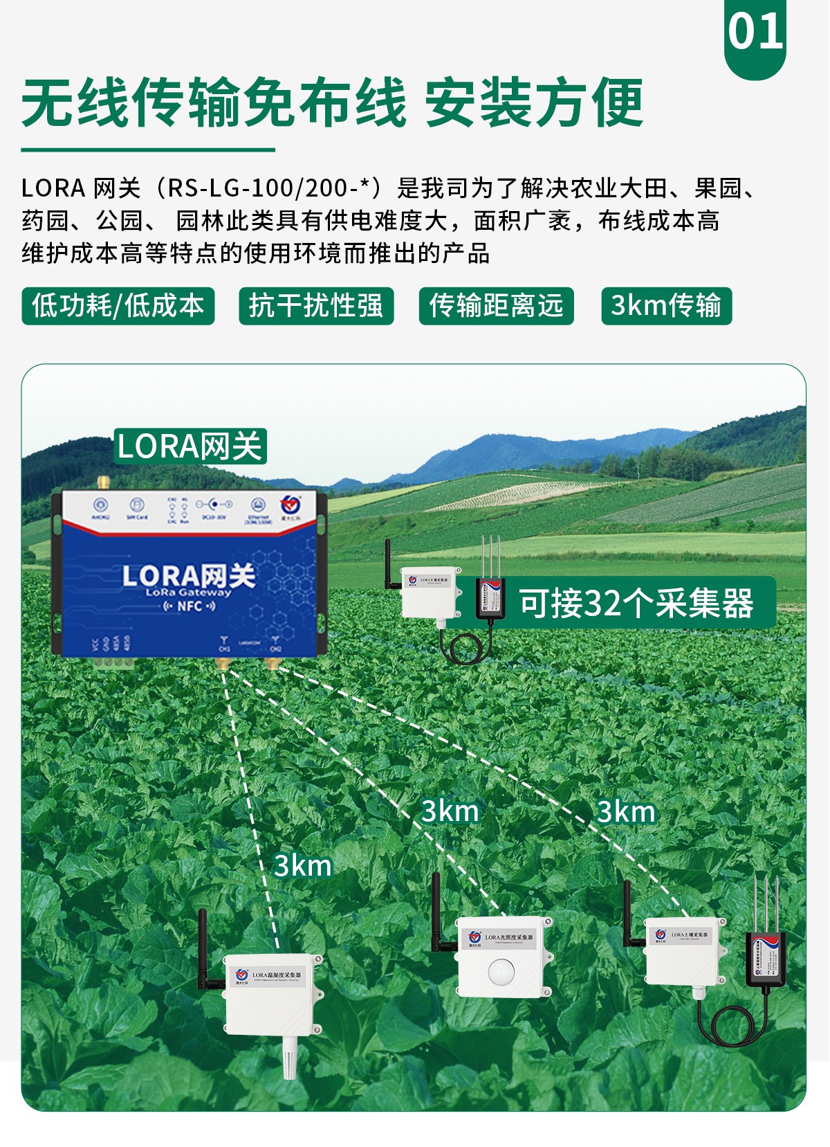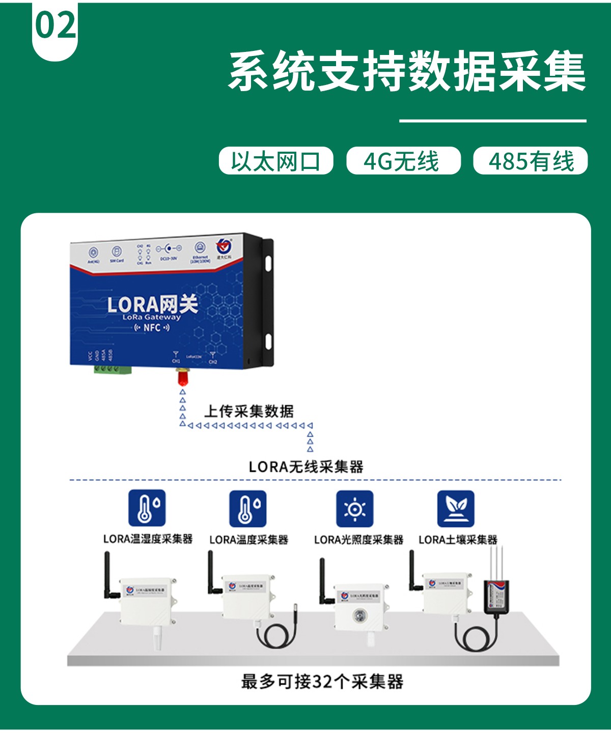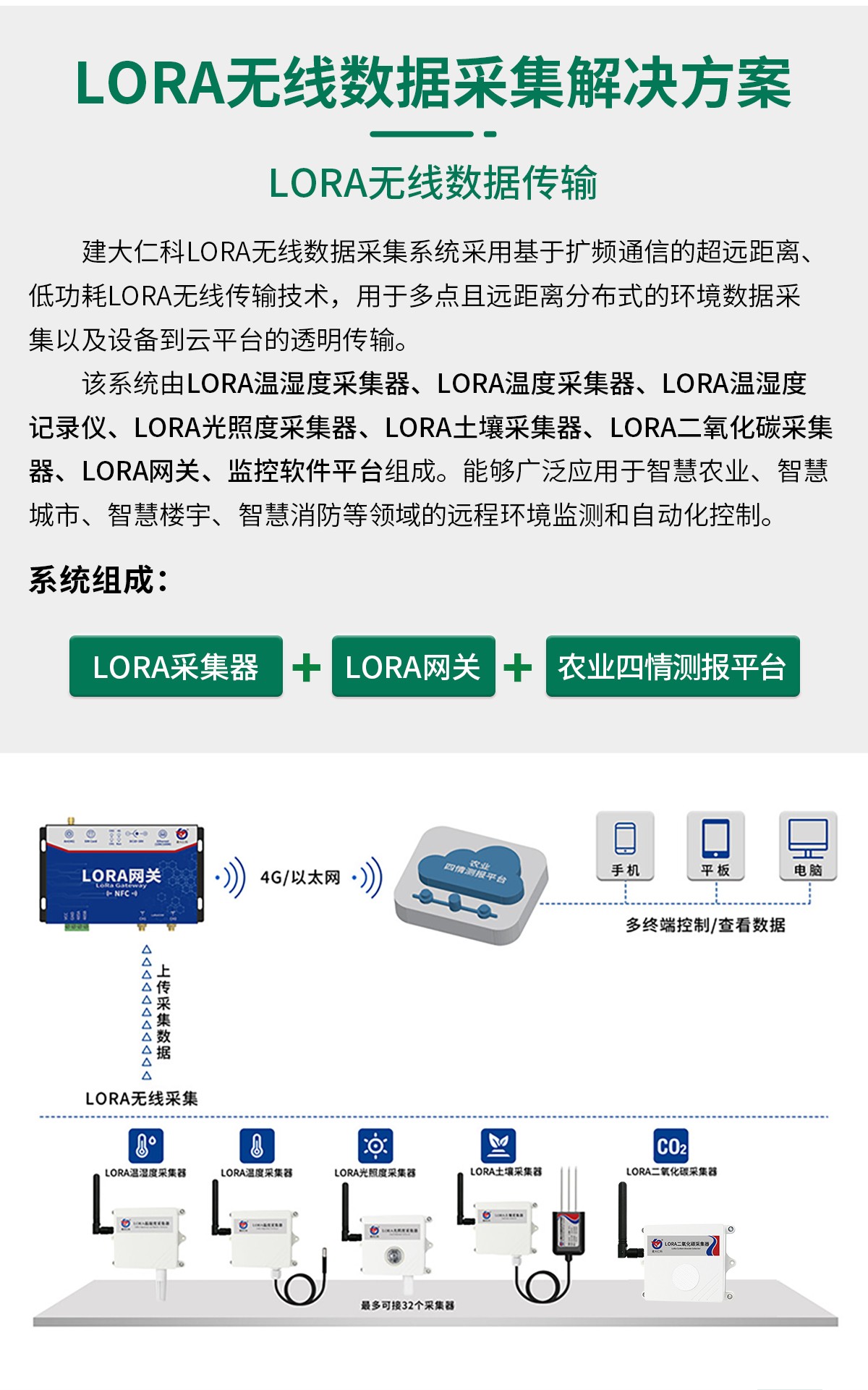 该系统由LORA温湿度采集器、LORA温度采集器、LORA温湿度记录仪、LORA光照度采集器、LORA土壤采集器、LORA二氧化碳采集器、LORA网关、监控软件平台组成。能够广泛应用于智慧农业、智慧城市、智慧楼宇、智慧消防等领域的远程环境监测和自动化控制。