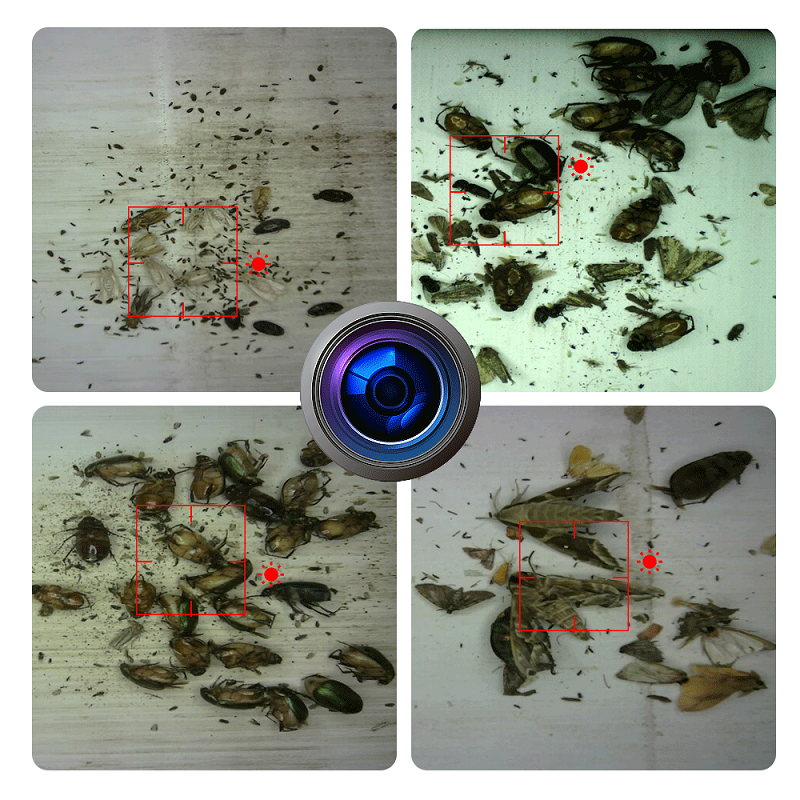1- 内置高清摄像头,最高支持2000万像素虫情图片,可实时、自动对传送带上的虫体进行清晰拍照采集图像,通过多层补光+自动对焦技术,攻克了弱光环境下虫体图像模糊的难题。