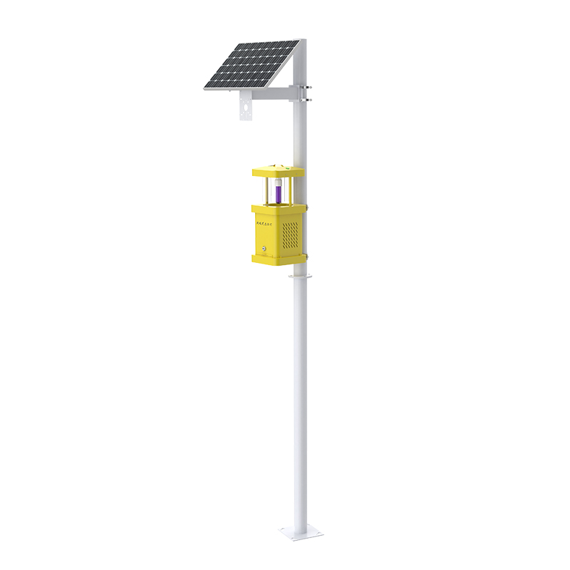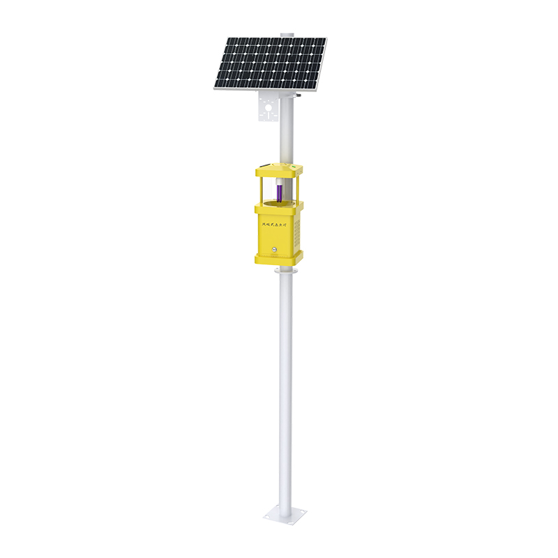 该设备以太阳能电池板为电源,白天储存电源,晚上为杀虫灯提供电源,引诱害虫 扑向灯源。该产品由诱虫光源、杀虫部件、集虫部件、支撑部件等组成。它具有结构简单、 安装方便、可操作性强、杀虫种类多、杀虫范围广、安全环保、无毒的特点。
